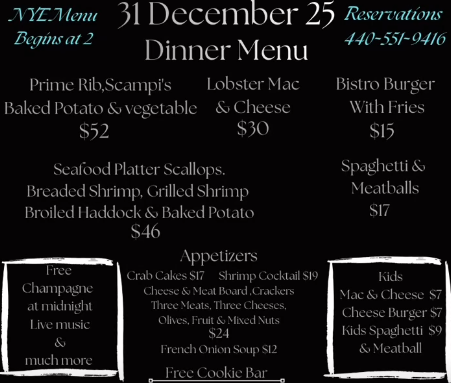 Join us for an unforgettable NYE Masquerade Party along the scenic shores of Lake Erie. No tux required, just your festive best!